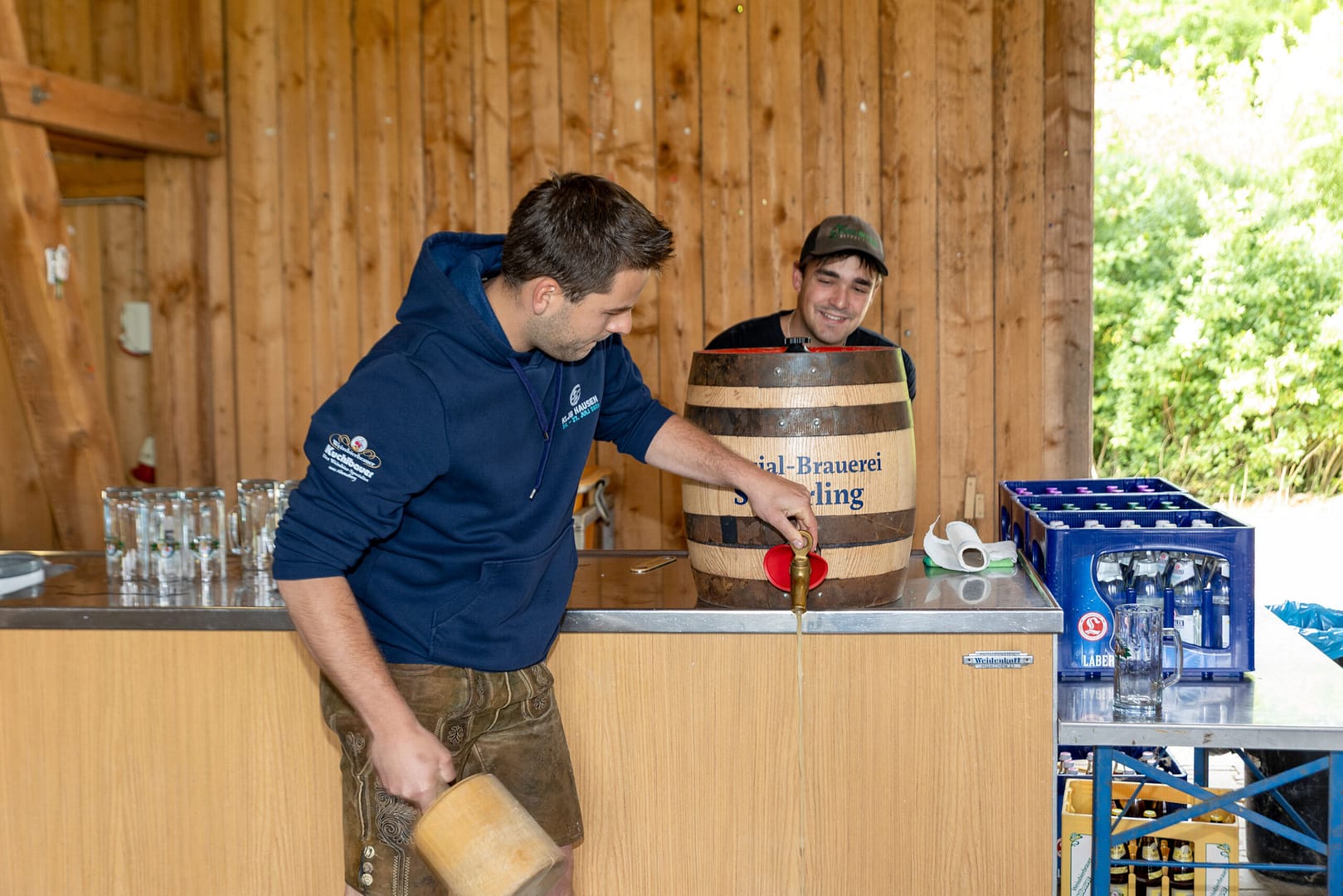 Mit einem kräftigen Schlag hieß es endlich: „O’zapft is!“ Unser erster Vorstand Maximilian Reitinger kümmerte sich ums Wichtigste – das Bier für alle Gäste und Landjugend Mitglieder.
